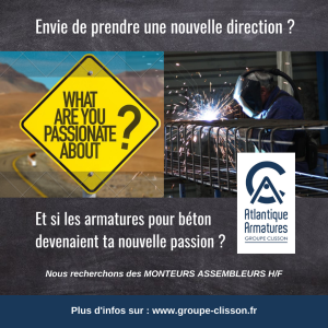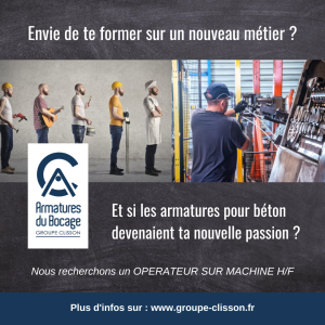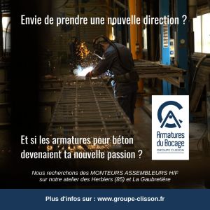 Le Groupe CLISSON recrute pour l'activité de ses quatre filiales : ATLANTIQUE ARMATURES, ARMATURES DU BOCAGE, CLISSON METAL et LASERIS.